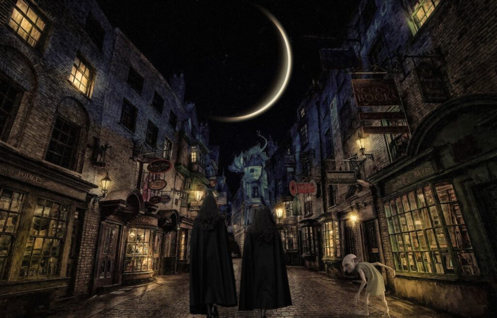 Vaatleme J. K. Rowlingi romaani “Harry Potter ja tarkade kivi” (1997) ning selle põhjal valminud filmi (Chris Columbus, 2001). Ruumi kokkuhoiu huvides valime siin võimalikult kompaktse analüüsiühiku, ja otsime vastust küsimusele, milline on loo tegevuspaiga transmeedialine dünaamika. Olgu selleks kaks tänavat: Privet Drive, kus asub Harry Potteri kasuperekonna kodu, ning Diagoni põiktänav, kus toimub peategelase esimene kohtumine võlukunsti maailmaga. Esimest neist mainitakse romaanis põgusalt kui harilikku sirget ja vaikset eeslinnatänavat, mida ääristavad korralikud tänavalambid ja hästihooldatud eesaiad. Diagoni põiktänav on seevastu hämar paik, mis “lookles ja vonkles kaugusse” (Rowling 1997: 61) ja mille äärtes leidus nii palju kummalist, et Harry soovinuks, “et tal oleks olnud veel vähemalt kaheksa silma” (Ibid., 62). Filmis kujutatakse Privet Drive’i visuaalselt monotoonse korduvate elementide reana ning Diagoni põiktänavat läbi küllusliku korratuse ja käänakute, mille taga olev jääb vaataja jaoks saladuseks. Kahe tänava näol on seega tegemist binaarse opositsiooniga, mis vahendab ruumi kaudu nn mugude ehk võluvõimeteta inimeste ja võlurite vastandmärgilisust. Seega on vastandus siin invariandiks, mida varieeritakse kirjandustekstis sõnavara ja kirjelduste mahuga ning filmis ja digitaalsel platvormil valguse, värvide, vormide, visuaalsete rütmidega. Filmis lisanduvad veel ka helilised vahendid.